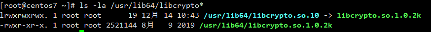ls -la /usr/lib64/libcrypto*通常在CentOS 7系统中,您会看到类似以下输出: